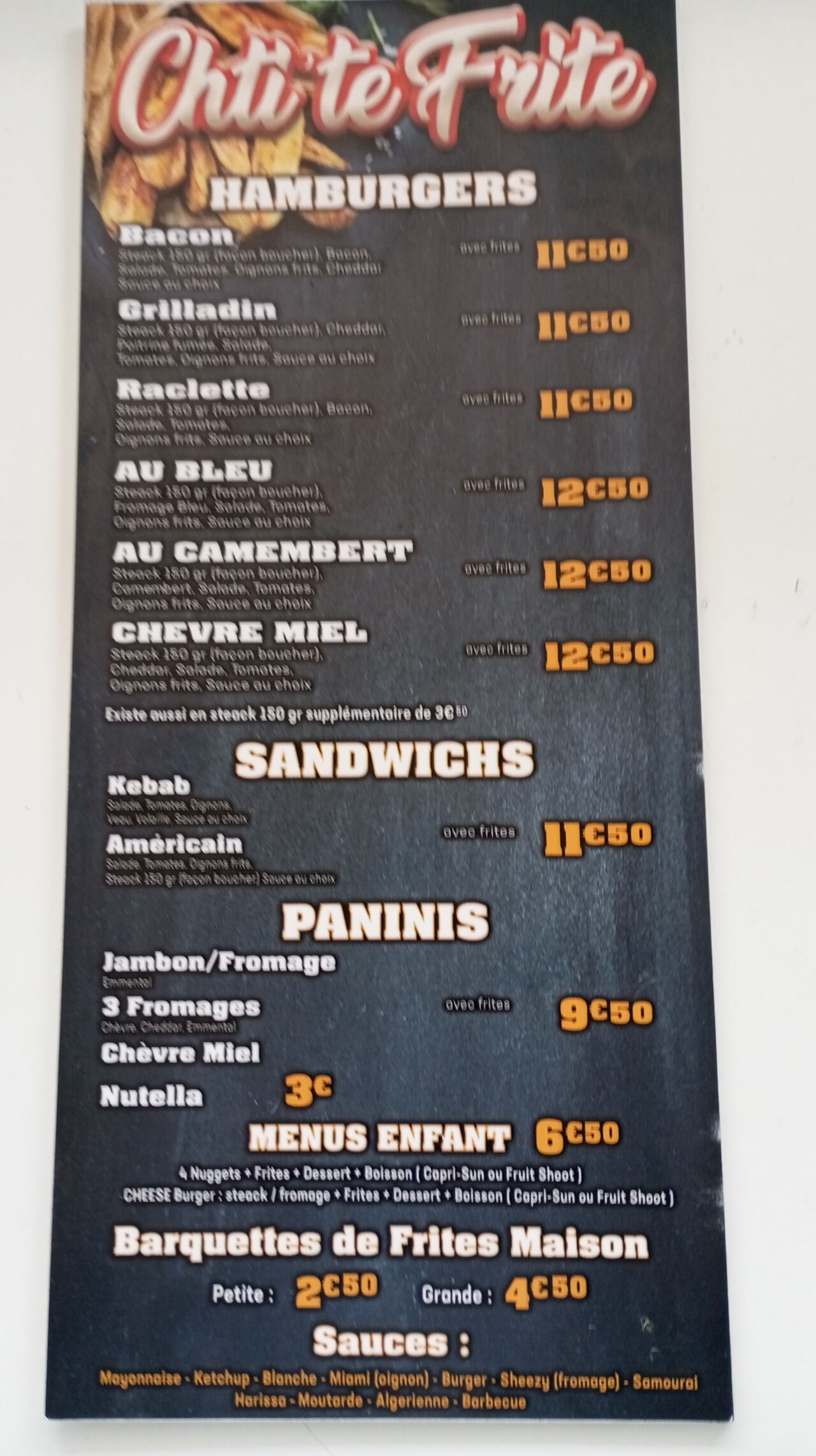 CALL +330627588639Vous trouverez des hamburgers, des salades, des paninis, des boissons, des menus enfants, des sandwichs et des FRITES MAISON !!!